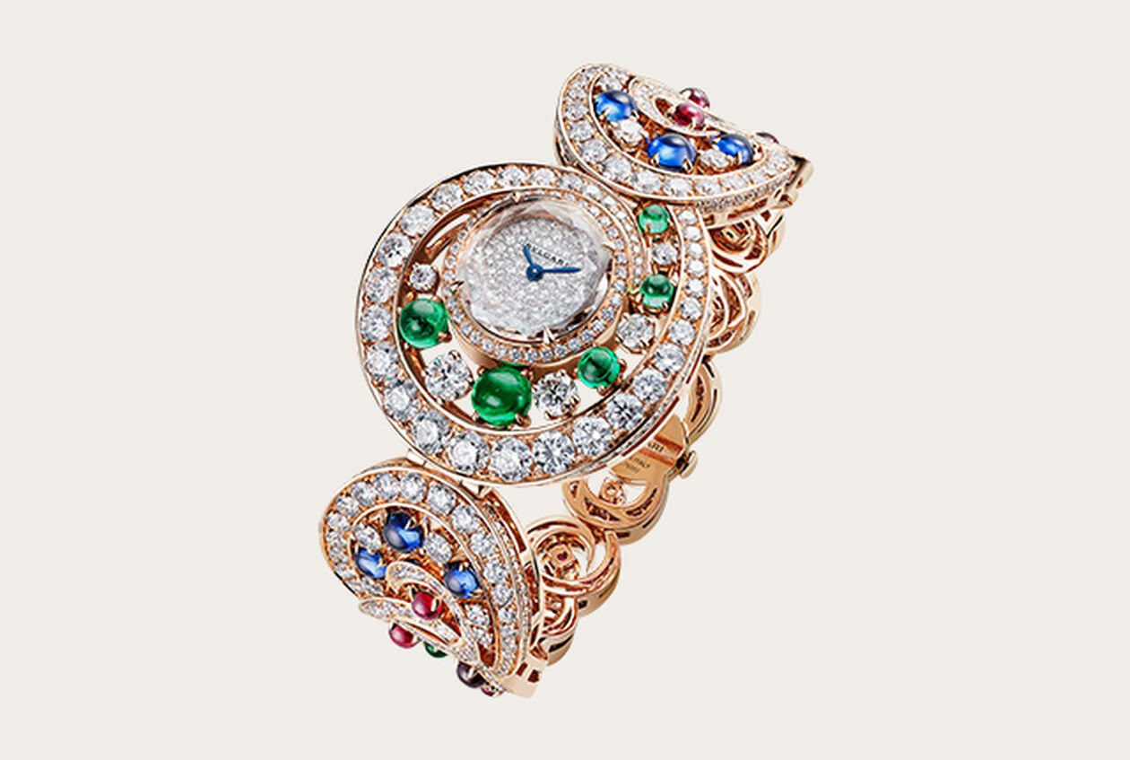 Un elemento de diseño fascinante que expresa la libertad creativa: rompiendo todas las reglas, Bvlgari coloca el motivo barroco de la espiral en diferentes niveles y con varias inclinaciones, logrando un resultado hipnótico.