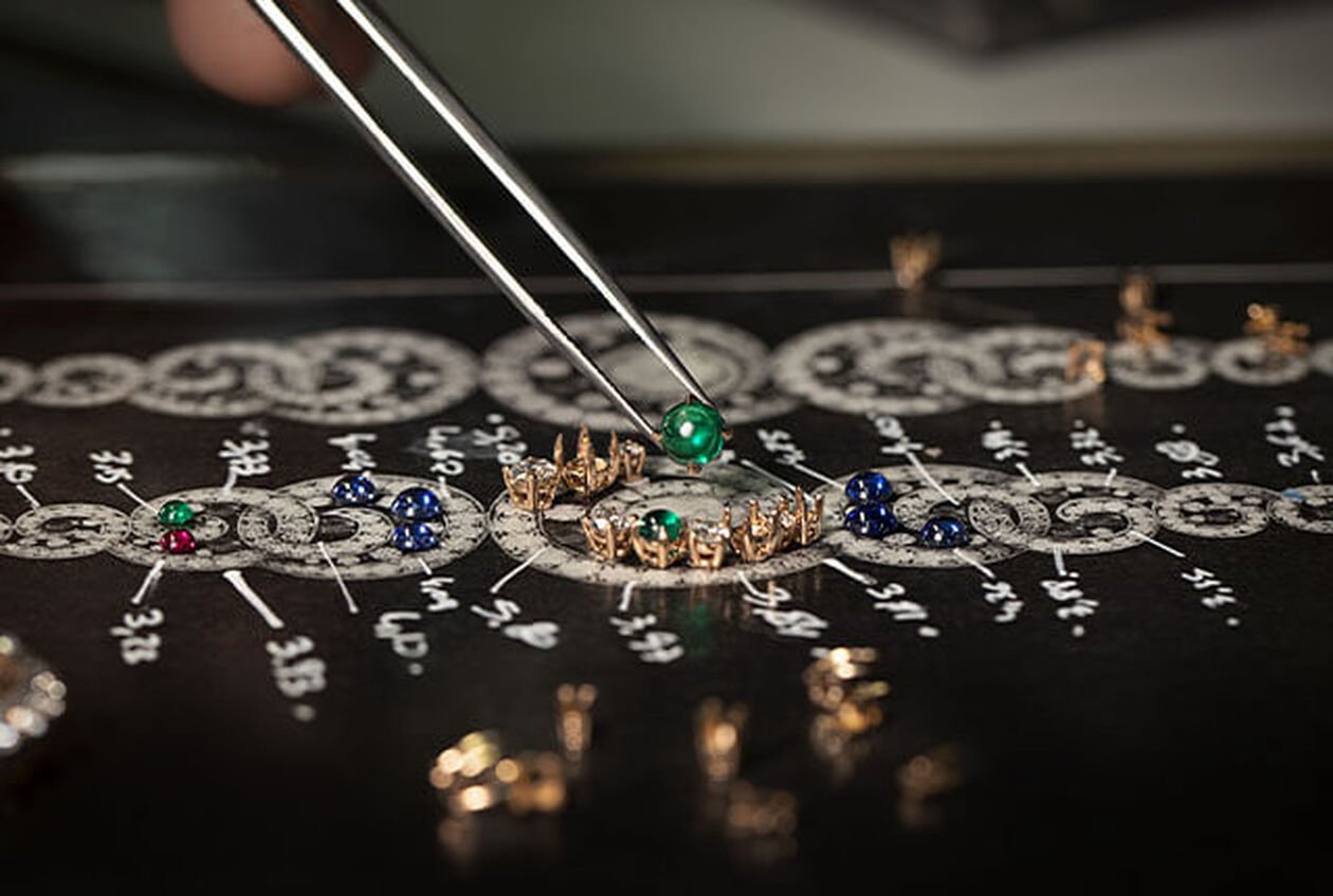 Un reloj como joya, una joya como reloj. Elaborado para envolver sensualmente la muñeca con sus espirales tridimensionales, el reloj requiere más de 1100 horas de trabajo para ser completado. El reloj de Alta Joyería, muestra de diseño distintivo y magnífica artesanía, guarda una sorpresa: una esfera engastada con diamantes elegantemente oculta bajo un seductor cristal de roca, visible a través de la claridad de la piedra preciosa facetada.