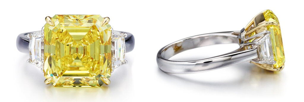 La pieza vendida más importante fue un soberbio anillo con un diamante amarillo fancy vivid yellow de 7,18 quilates, claridad VS1 y en talla esmeralda, acompañado de dos diamantes incoloros en forma de charretera con un total de aproximadamente 1 quilate. El anillo en platino y oro amarillo de 18 quilates partía con una horquilla de entre 130.000 y 190.000 euros, y acabó vendiéndose por 238.377 euros