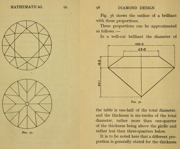 Aunque desde entonces se fue experimentando con otras tallas, éstas trataban de conservar la mayor cantidad de material posible, en detrimento de otros aspectos como el realce del brillo o la dispersión. Pero en 1919, Marcel Tolkowsky publicó su estudio, que determinaba qué ángulos y proporciones eran las adecuadas para que el diamante presentara su mejor brillo y dispersión. A esta talla se la conoció como talla brillante moderna, y sigue siendo, a día de hoy, una de las más populares. Cuenta con un total de 57 facetas (58 si el culet estuviera presente), 33 de ellas en la corona y 24 en la culata.