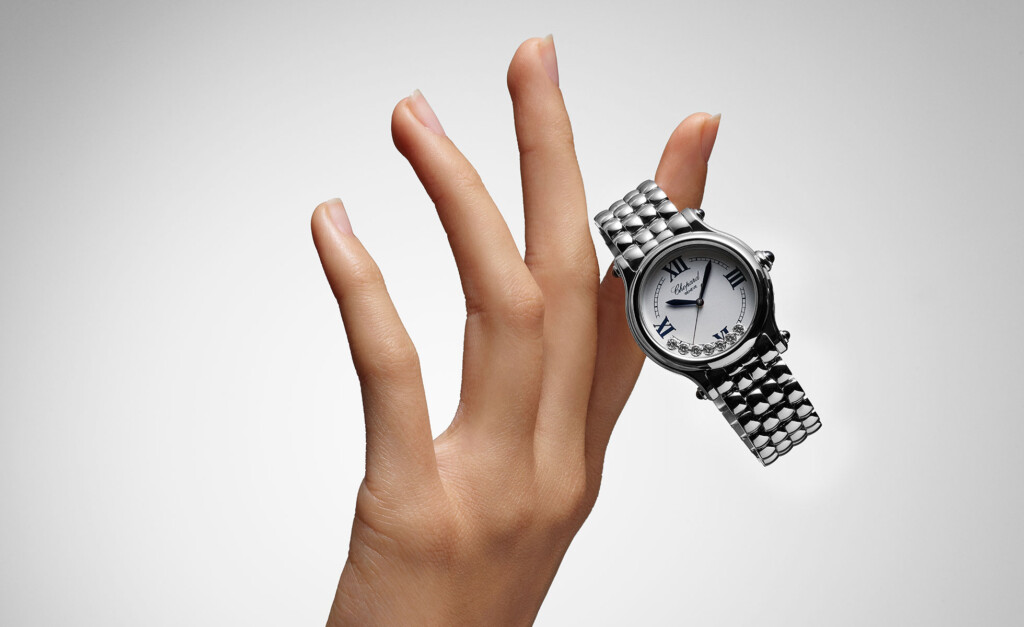 Para Chopard el sentido de la proporción tiene una importancia primordial. Diseñado para acompañar a las mujeres en sus actividades diarias, el Happy Sport es un reloj que, ante todo, debe ser cómodo de llevar. Como explicó Caroline Scheufele en 1993: “Quería un reloj que pudiera usar todo el día: en el gimnasio, en la oficina o para ir a una cena.” Esta constante búsqueda de armonía se ha logrado ahora mediante el uso del número áureo, que ha definido las proporciones de los nuevos modelos de la colección. Desde la Antigüedad, este equilibrio matemático se ha encontrado tanto en la ciencia como en el arte y la arquitectura, tratando de reproducir la armonía que prevalece en la Naturaleza y en sus creaciones.
