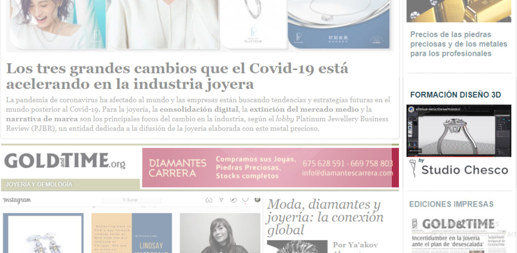 Portada del periódico Gold & Time sobre el mercado del diamante