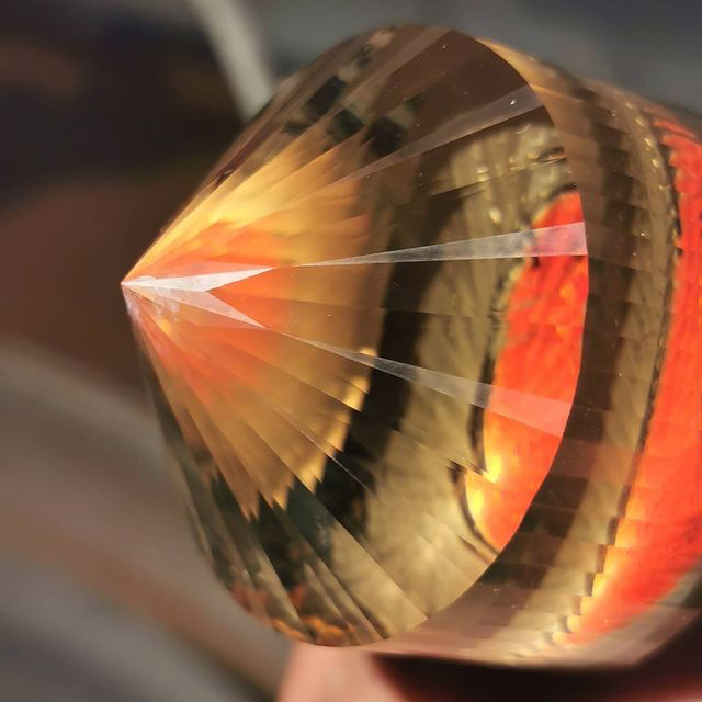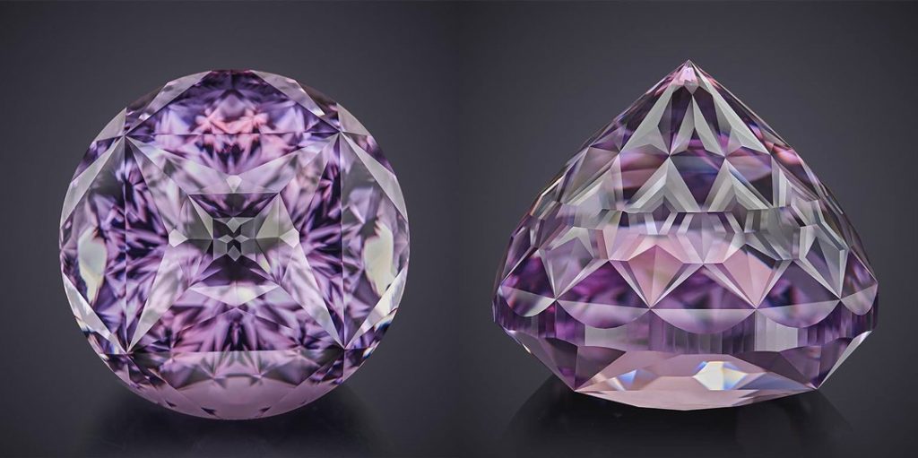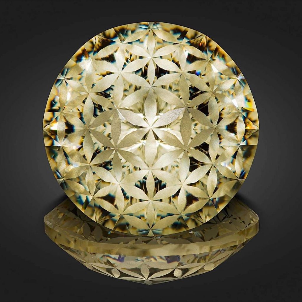 R: En parte es por lo que comenté anteriormente. Como artista, supongo que cada objeto de arte debería tener un mensaje. Da igual lo que sea: música, una pintura, un poema o una gema. Un mensaje de belleza, un mensaje de armonía, un mensaje de felicidad. A veces utilizo números «felices» de facetas, como 88 o 108; a veces reflejo en mis diseños imágenes bellas o significativas, como el loto o la Flor de la Vida; en otras ocasiones, simplemente plasmo mi energía positiva, tallando la gema mientras medito y rezo por la abundancia global. Esto es importante: siempre intento que cada piedra sea un mensaje de felicidad de un modo u otro.