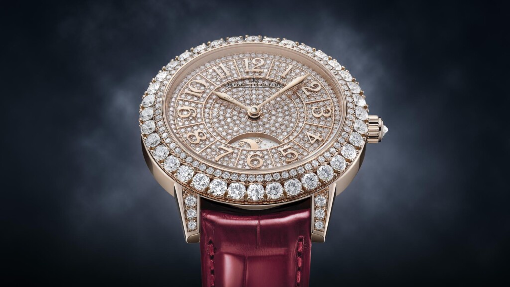 Jaeger-LeCoultre presenta dos nuevos modelos Rendez-Vous Dazzling Night & Day. Con estos relojes nuevos, el concepto se adentra en el universo de la Alta Joyería, realzando los dos círculos de diamantes que conforman el bisel, el sello distintivo del Rendez – Vous Dazzling, con una esfera totalmente engastada con diamantes. El modelo se completa con una correa de piel de aligátor de color rojo intenso y el otro con un brazalete de oro rosa totalmente engastado con diamantes.