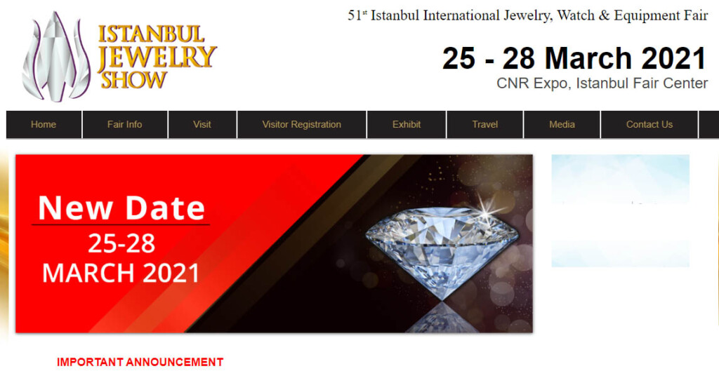 Después de posponer la 50ª edición de la Feria de Joyería de Estambul desde su primera fecha prevista en marzo, y pasarla a los días 18 y 21 de junio, los organizadores acaban de enviar una nota anunciando su cancelación hasta el 25 de marzo de 2021.