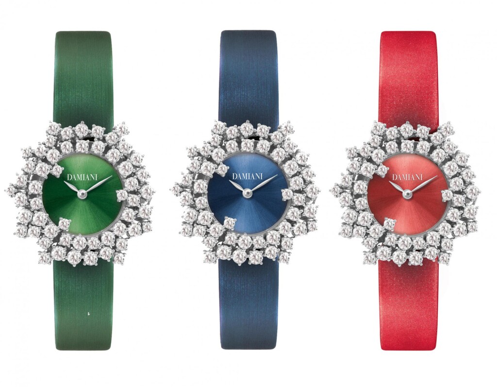 En este año centenario tan especial, Damiani ha creado una línea de impresionantes relojes Mimosa que se vuelven aún más seductores y contemporáneos gracias al uso del color en la esfera y en la correa de satén, logrando el equilibrio perfecto entre elegancia y sofisticación.