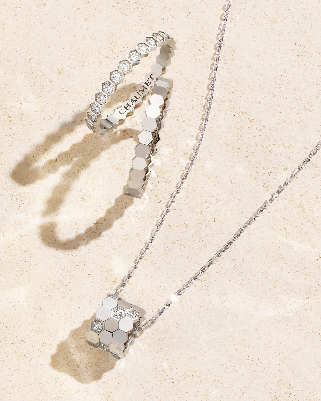 Incandescente, el nuevo colgante Bee My Love retoma con ligereza el estilo sobrio del panal, motivo icónico de Chaumet, así como de otra firma gala de lujo ligada a la historia de Francia, Guerlain, que también fue proveedora de los Bonaparte como perfumistas reales. Y es que los Bonaparte hicieron de las abejas todo un símbolo a proteger y del que vanagloriarse.