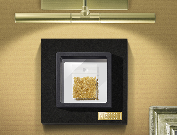 GOLDEN COCA – polvo eres y al polvo volverás – es la provocación más atrevida de NESS1: 23 quilates de polvo de oro puro que se recogen como sensacional diseño interior a través de un marco especialmente diseñado para mantener la pieza sana y salva. GOLDEN COCA es una obra de arte conceptual pecaminosa; una creación que expresa el poder y el valor de las materias primas; un homenaje devoto a su esencia. Es el Manifiesto de las creaciones de NESS1, que invita a múltiples reflexiones y al descubrimiento de la belleza inesperada y la positividad de todo, más allá de las meras expectativas o apariencias.