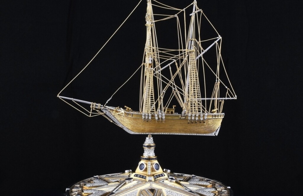 Se trata de una refinada reproducción a escala de la nave francesa Le Houssard la cual suma más de 150 quilates de gemas naturales. La Casa de Subastas barcelonesa Subarna espera el próximo 13 de mayo a coleccionistas nacionales e internacionales, para una subasta en la que destaca una obra de joyería inspirada en el trabajo de Fabergé. Según nos cuenta el director de admisiones, Vicente Climent, esta maqueta realizada en materiales nobles estuvo oculta para sus herederos durante años en una caja fuerte y salió a la luz hace 3 años de forma repentina.